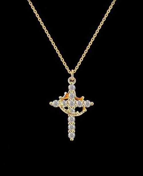 Encircling the top of the cross is a delicately sculpted gold crown—representing the Kingship of Christ and the victory He has already won. This meaningful detail serves as a daily reminder that you belong to Him, you are covered by His promises, and you walk confidently under the authority of the King of Kings.